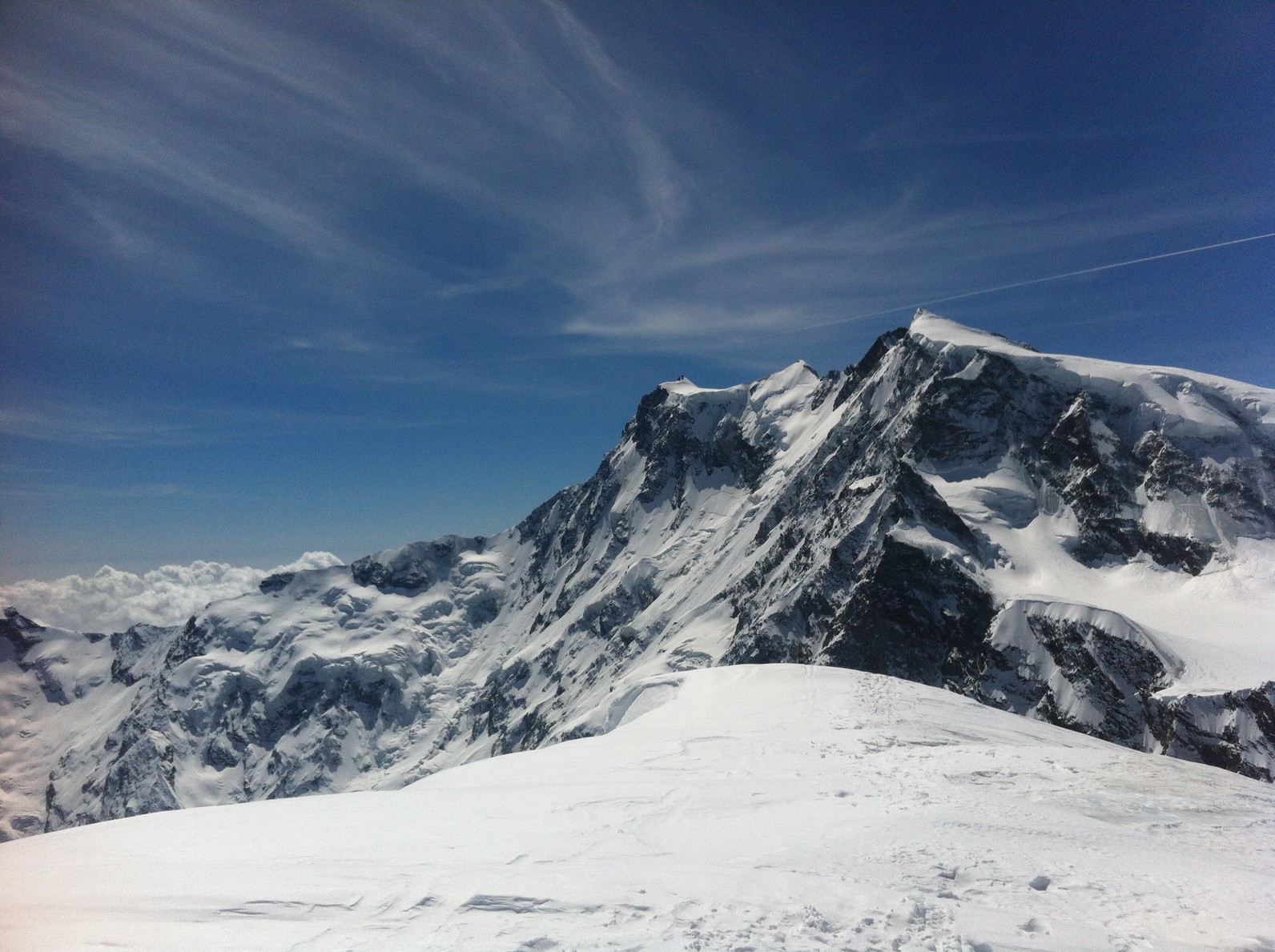 From Zermatt we go up to Stockhorn then Cima di Jazzi. A very hot day , but the snow stay very good.