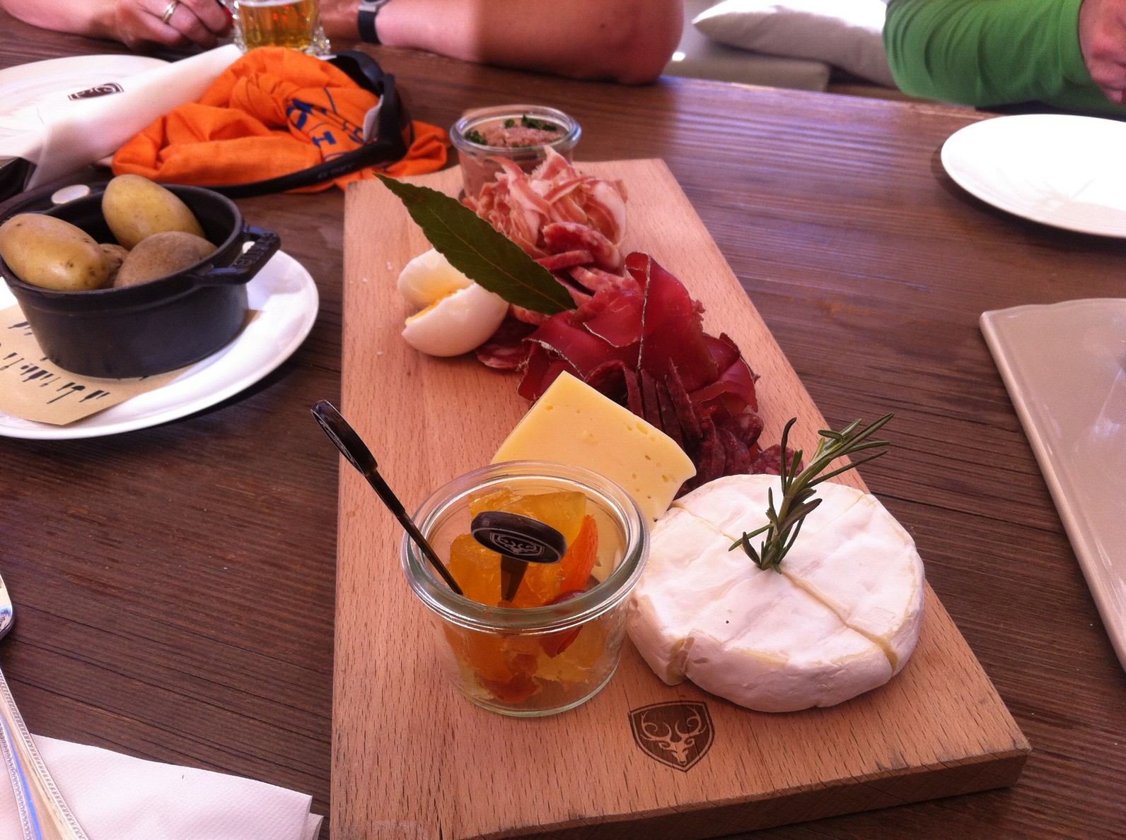 Le jour suivant nous cédons aux sirènes technologiques et prenons l'hélicoptère pour monter au Mont Rose à 4000 m . De là une dernière montée de 500m nous emmène à la Silbersattel. S'en suit une interminable descente sur Zermatt , longuement savourée. Arrivés en bas il nous parait indispensable de reprendre quelques forces.... magnifique séjour et conditions optimales pour clore la saison de ski !! tip top